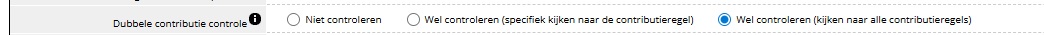 | Wel controleren (kijken naar alle contributieregels) | Er wordt gekeken of het lid al in een contributieronde voorkomt voor de periode, ongeacht de regel. Is dat het geval dan wordt het lid niet meegenomen in de contributie. |