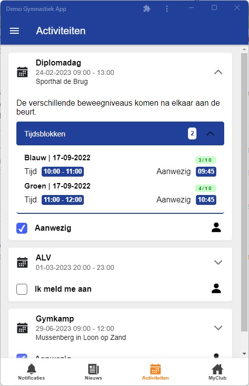 Afhankelijk van de optie ingesteld door jouw club kun je er op klikken om te zien wie aangemeld is voor deze activiteit.
