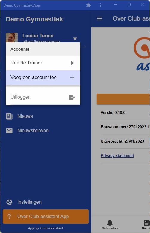 Erg handig als je meerdere kinderen hebt die lid zijn bij dezelfde club. Nadat je bent ingelogd als één van je kinderen, navigeer je naar het menu en selecteer "Voeg een account toe". Je kunt hier nu inloggen met de accountgegevens van ander lid van het gezin.