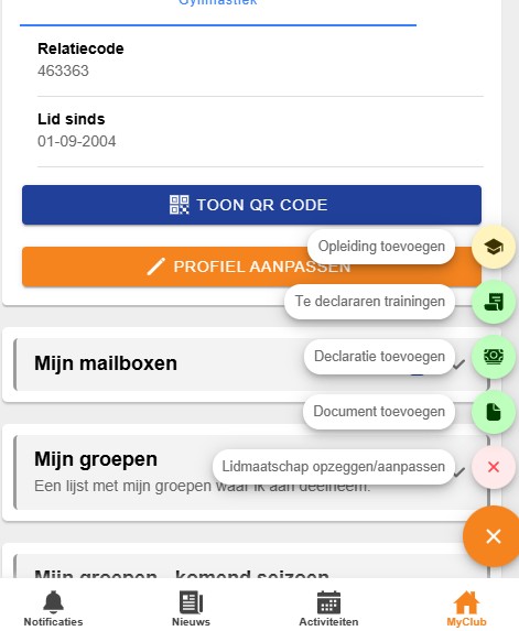 - Jouw declaraties, als jouw club deze mogelijkheid heeft ingesteld.