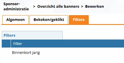 | Sponsor | Kies hier de juiste sponsor uit de lijst waaraan deze banner/dit logo gekoppeld is. Dit is optioneel. Je kunt de banners ook voor andere doeleinden inzetten. |
