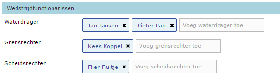 Er zijn veel vragen geweest met betrekking tot het koppelen van een scheidsrechter die geen lid is en het toevoegen van andere functionarissen zoals grensrechters en waterdragers. Daarom kun je nu eenvoudig verschillende typen functionarissen toevoegen en zowel leden als niet-leden koppelen aan deze functies.