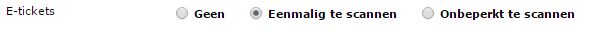 Bij het aanmaken van een activiteit heb je vanaf heden de keuze om geen e-tickets te gebruiken, eenmalig scanbare e-tickets of onbeperkt scanbare e-tickets.