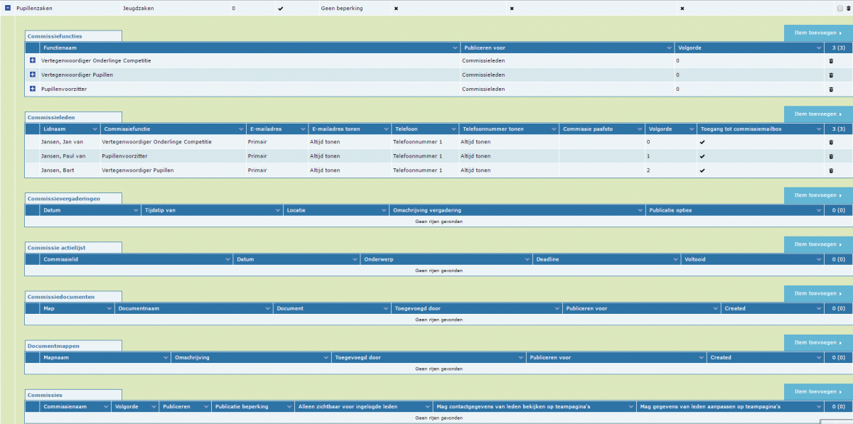 Klik vervolgens onder het kopje "Commissieleden" rechts op "Item toevoegen".
