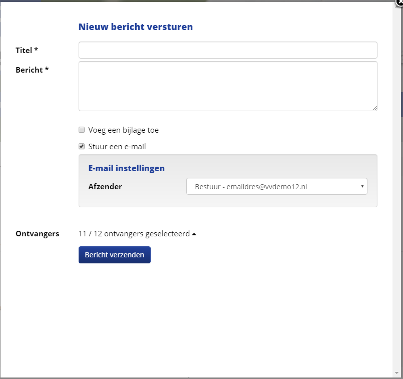 Als je alles hebt gecontroleerd en je bericht is goed, dan klik je op 'Bericht verzenden'. Nu zal je bericht verzonden worden op de door jou gekozen manier, naar de door jou geselecteerde ontvangers.