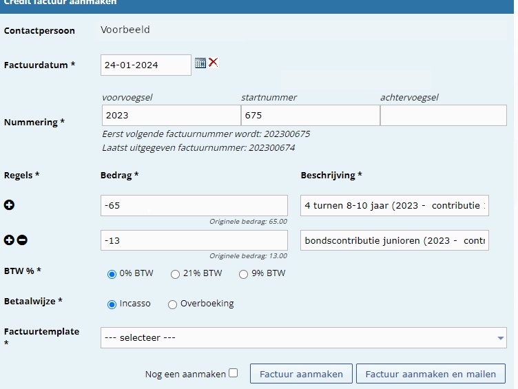 Contributie facturen crediteren