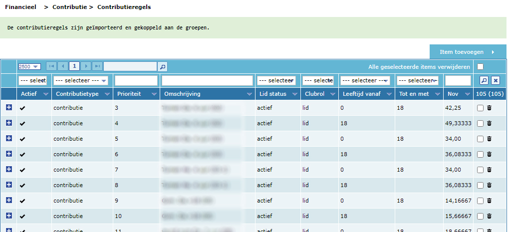 - Ga in Club-assistent naar Financieel -> Contributie > Contributieregels