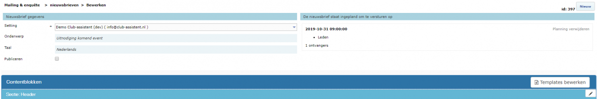 Om een mailing te versturen, doorloop je in Club-assistent de volgende stappen: