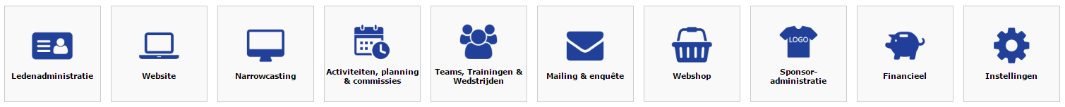 | Materiaalbeheer | Ledenadministratie | Activiteiten, planning & commissies |