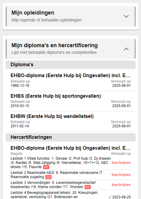 Het is daar ook mogelijk om je direct in te schrijven op een activiteit voor een benodigde competentie.