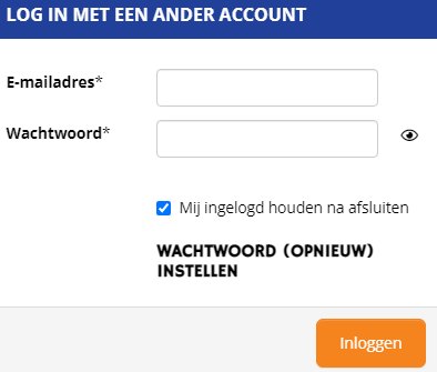 Ben je eerder ingelogd in de Back-office maar nog niet op de website dan kun je niet je Back-office account gebruiken om in te loggen op de website. Gebruik in dat geval ook de wachtwoord vergeten functie zoals hierboven aangegeven.