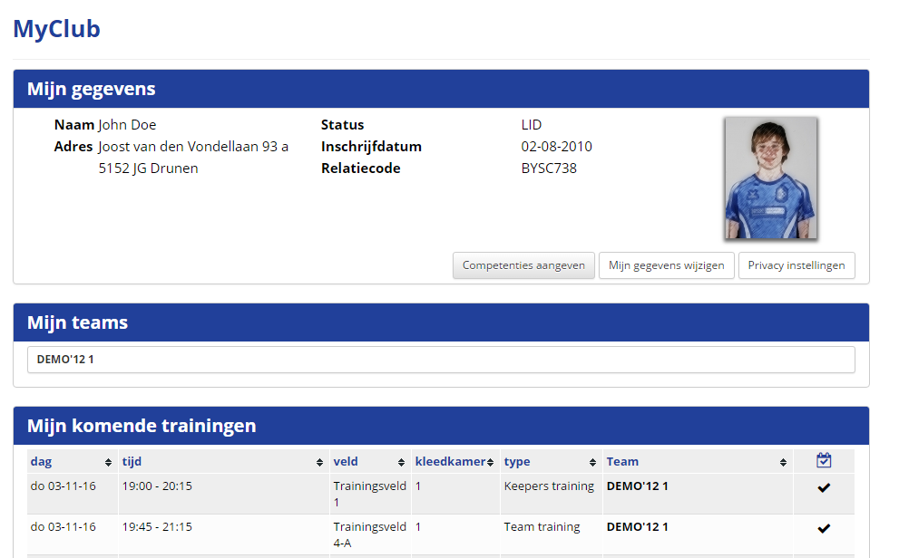 Als lid heb je alleen zelf toegang tot jouw MyClub pagina. Hier wordt alle informatie getoond die belangrijk is voor jou als lid.