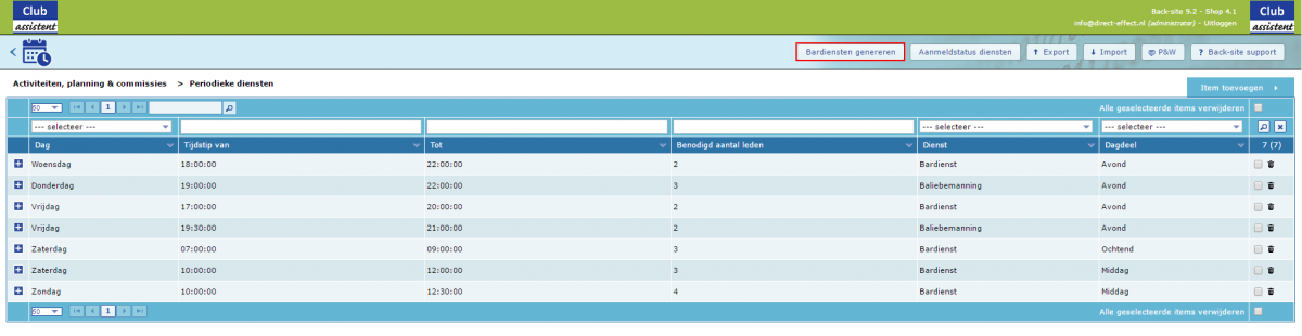 In Club-assistent ga naar Activiteiten, planning en commissies. Daarna klik je barrooster op periodieke diensten.