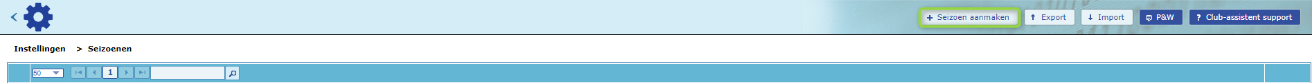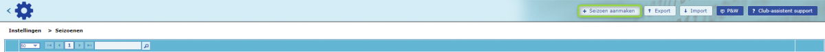 Voor je zie je een overzicht van alle seizoenen. Een nieuw seizoen kan je aanmaken door bovenin de blauwe balk op '+ Seizoen aanmaken' te klikken.