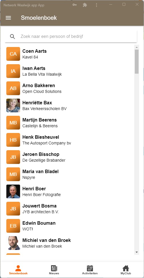 Navigeer naar het smoelenboek in het menu en je krijgt een lijst met alle leden voorzien van naam en foto.