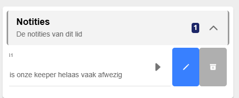 Indien de ledenadministratie notities gemaakt heeft over een bepaald lid en deze beschikbaar stelt voor de trainer dan zie je dit op de teamlid detailpagina in de eerste sectie.