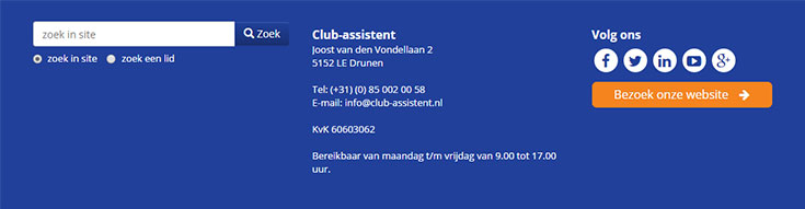 Je website is hét communicatiemiddel van je vereniging. Het is de plaats waar externen je contactinformatie vinden, nieuwe leden zich aanmelden en bestaande leden het nieuws lezen, zich inschrijven voor activiteiten, etcetera. In Club-assistent zorgen we ervoor dat je je website geheel naar eigen wens in kunt richten en je bovendien alle gebeurtenissen binnen je vereniging snel kunt delen via je website.