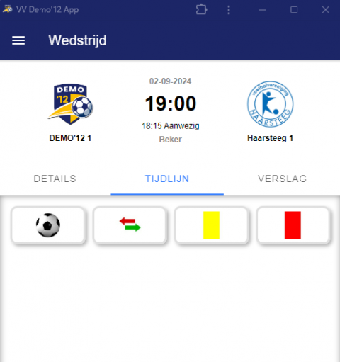 Op de het tabblad Tijdlijn zie je de geregistreerde gebeurtenissen van de wedstrijd.