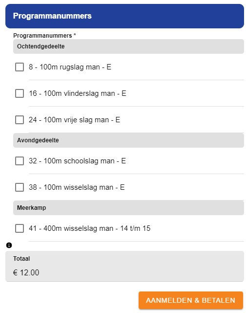 Bij het aanmelden kun je aangeven aan welke programmanummer je wilt deelnemen.