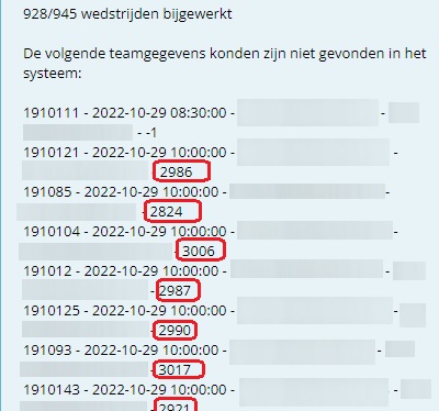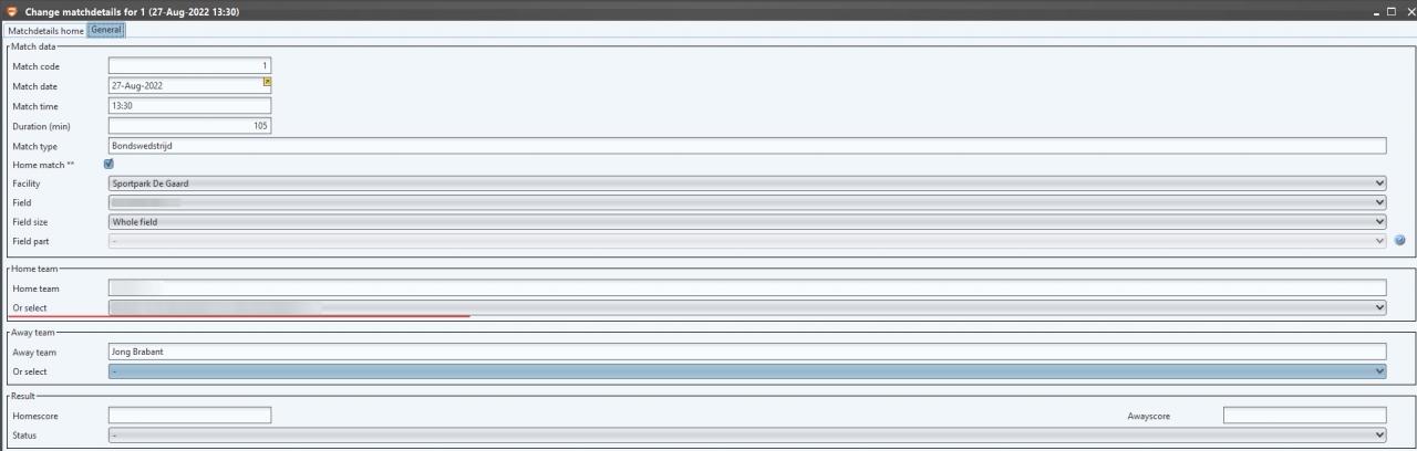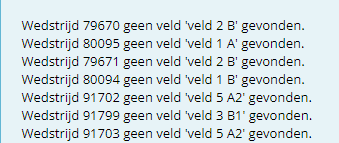 Velden niet ingesteld bij wedstrijden uit Sportlink.