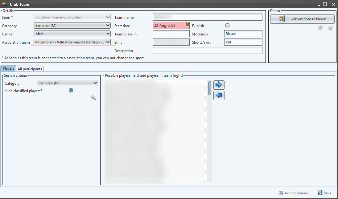 Ga in Club-assistent naar "Teams, Trainingen & Wedstrijden" en klik vervolgens rechtboven op "Sportlink club.data".